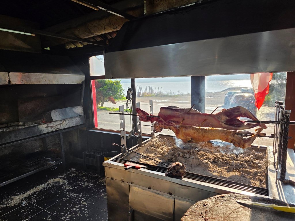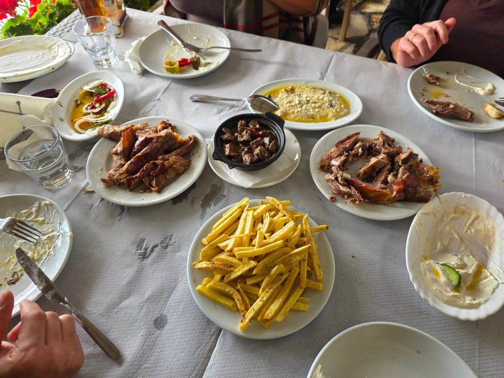Our friends rented a car and picked us up on Saturday. We drove a couple of hours and stopped for lunch by the beach. It was such a delicious experience and we were so lucky that not only had they been there before but they were willing to order for the table so we didn’t have to make any decisions (my favorite thing is someone else doing all the ordering). I can’t describe all the things we ate but they were great; pickled veg, goat, lamb, yogurt sauce…I don’t even know what was in the thing I liked most but it was delicious. We had cats and chickens keeping us company under the table. Perfection.